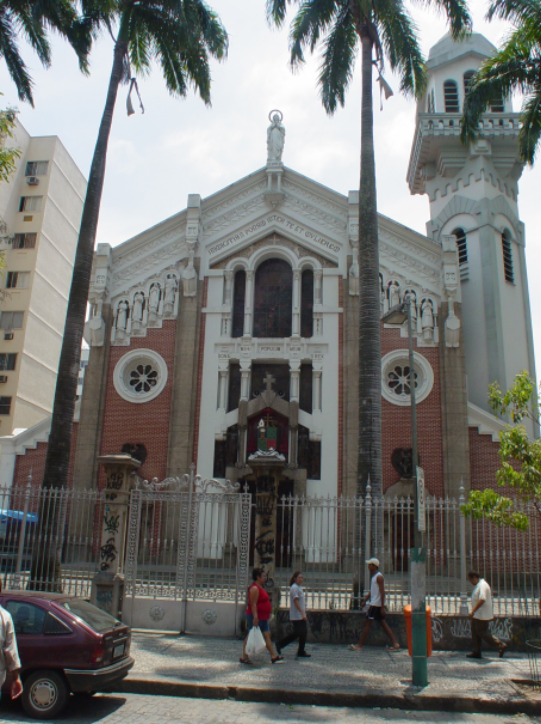 A paróquia de Nossa Senhora de Lourdes, criada por decreto em agosto de 1900, funcionou na capela situada na rua Barão de Drummond nº 17, até 1918 quando foi vendida para as freiras do convento da Ajuda. A atual igreja de Nossa Senhora de Lourdes foi projetada pelo arquiteto italiano Antônio Virzi, que recebeu pela autoria a medalha de bronze no Salão de 1922 da Escola Nacional de Belas Artes. A pedra fundamental foi lançada em 1914. As obras começaram em 1919 e somente terminaram em 1943 com a construção do campanário. A fachada eclética combina de modo inovador elementos historicistas que já foram identificados com as igrejas lombardas e com a arquitetura italiana. Mais original é a ousada espacialidade do interior. Surpreende o tratamento dado ao altar-mor. Em forma de uma gruta, reproduz o ambiente da Gruta de Massabielle, existente na cidade francesa de Lourdes, onde a Nossa Senhora apareceu à Santa Bernadette.
